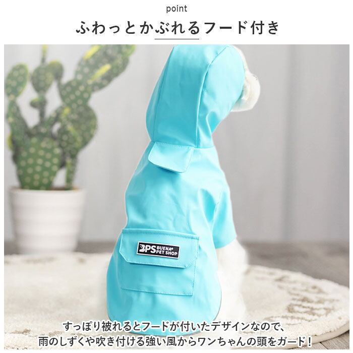 ・すっぽり被れるとフードが付いたデザインなので、雨のしずくや吹き付ける強い風からワンちゃんの頭をガード!