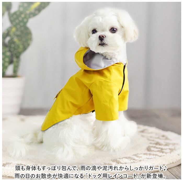 ・頭も身体もすっぽり包んで、雨の滴や泥汚れからしっかりガード♪雨の日のお散歩が快適になる「ドッグ用レインコート」が新登場。