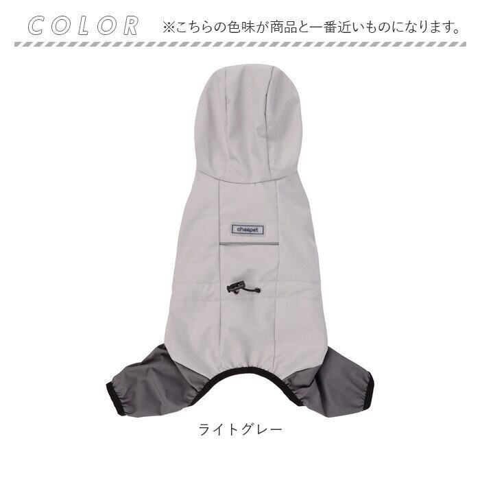 ・身頃部分と袖の生地を鮮やかに色を切り替えたスタイリッシュなバイカラーデザイン。お洋服感覚でオシャレに着れる、雨の日が楽しくなるドッグウェア。