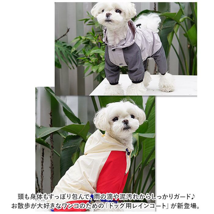 ・頭も身体もすっぽり包んで、雨の滴や泥汚れからしっかりガード♪お散歩が大好きなワンコのための「ドッグ用レインコート」が新登場。