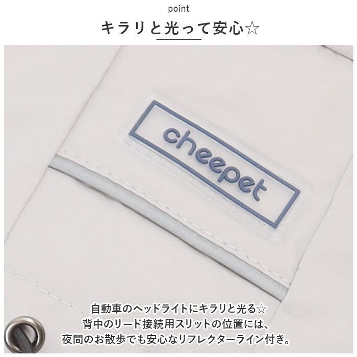 ・自動車のヘッドライトにキラリと光る☆背中のリード接続用スリットの位置には、夜間のお散歩でも安心なリフレクターライン付き。