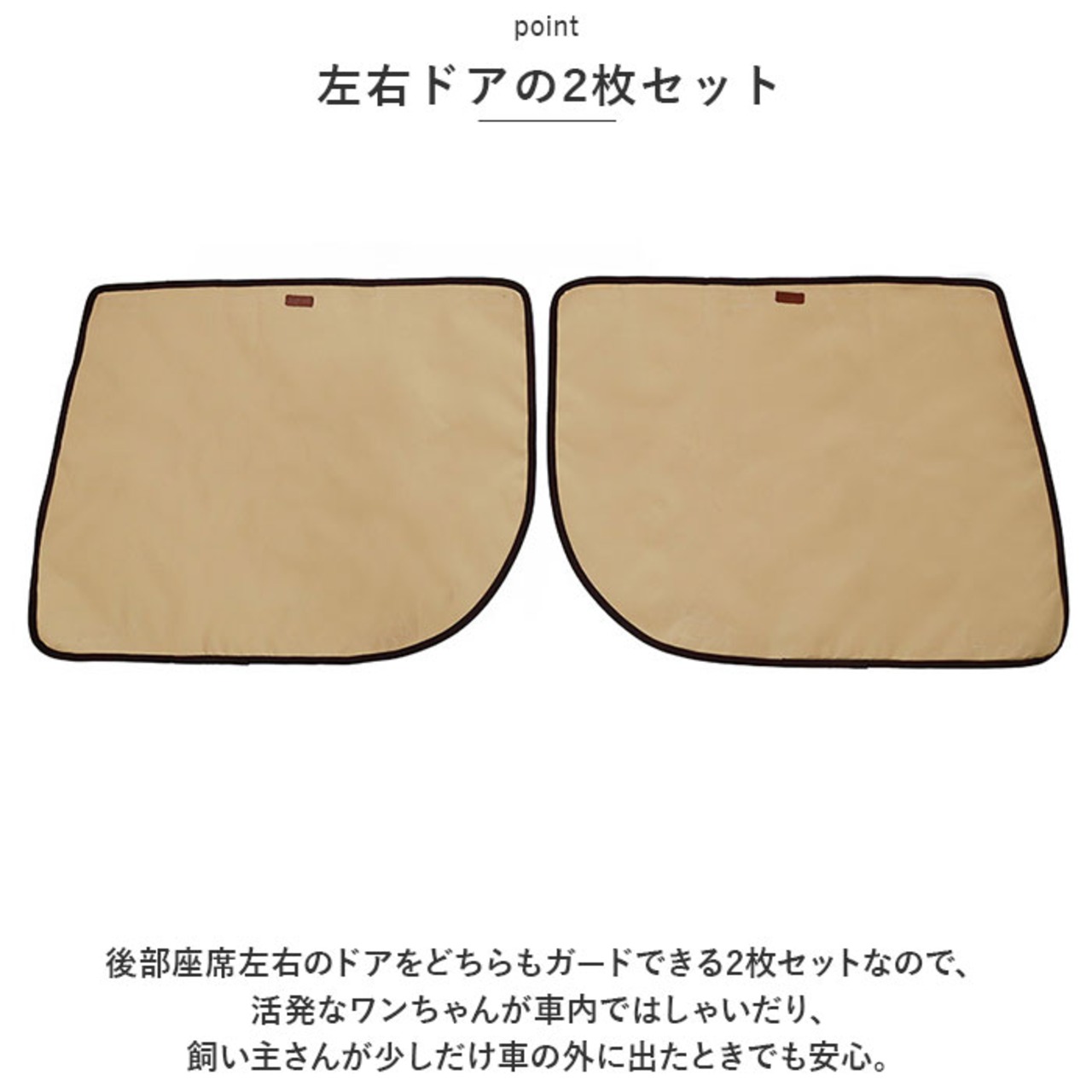・後部座席左右のドアをどちらもガードできる2枚セットなので、活発なワンちゃんが車内ではしゃいだり、飼い主さんが少しだけ車の外に出たときでも安心。