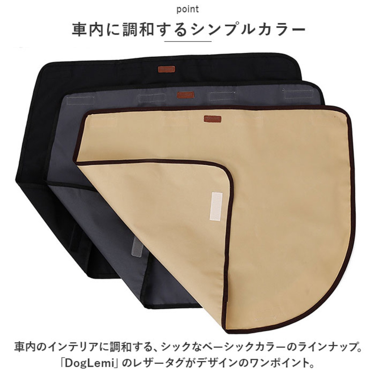 ・車内のインテリアに調和する、シックなベーシックカラーのラインナップ。「DogLemi」のレザータグがデザインのワンポイント。