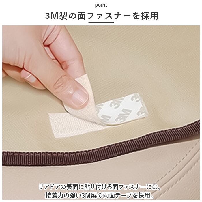 ・リアドアの表面に貼り付ける面ファスナーには、接着力の強い3M製の両面テープを採用。