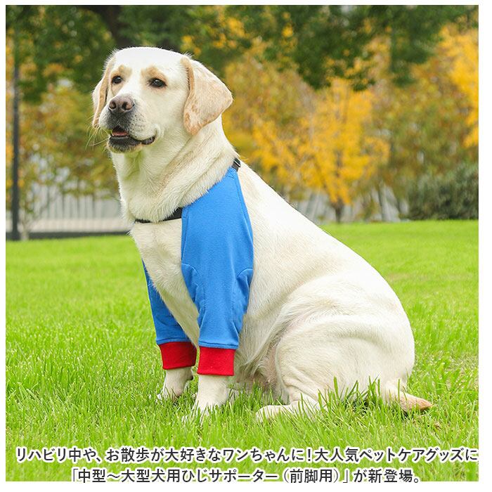 ・リハビリ中や、お散歩が大好きなワンちゃんに!大人気ペットケアグッズに「中型~大型犬用ひじサポーター(前脚用)」が新登場。