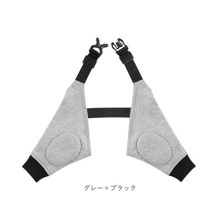 ・前脚用のサポーター2つが伸縮ゴムベルトでつながった左右一体型タイプ。左右のサポーターにスポッと両前脚を差し込み、背中でバックルベルトと留めるだけで装着簡単!