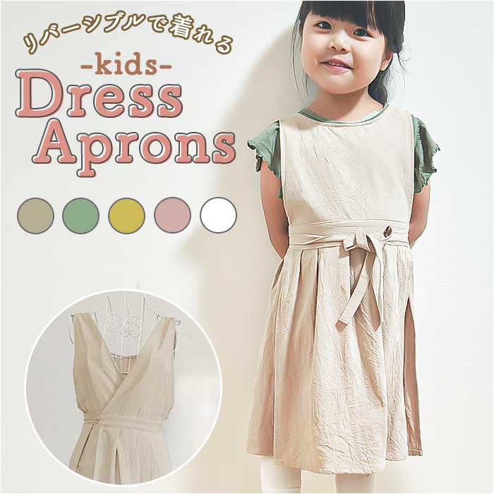 ドレスエプロン キッズ エプロン 通販 ワンピース ワークエプロン 前掛け 前掛 ロング 首掛け 無地 綿100% ゆったり 幼稚園 絵画 作業着 料理 掃除 かわいい おしゃれ