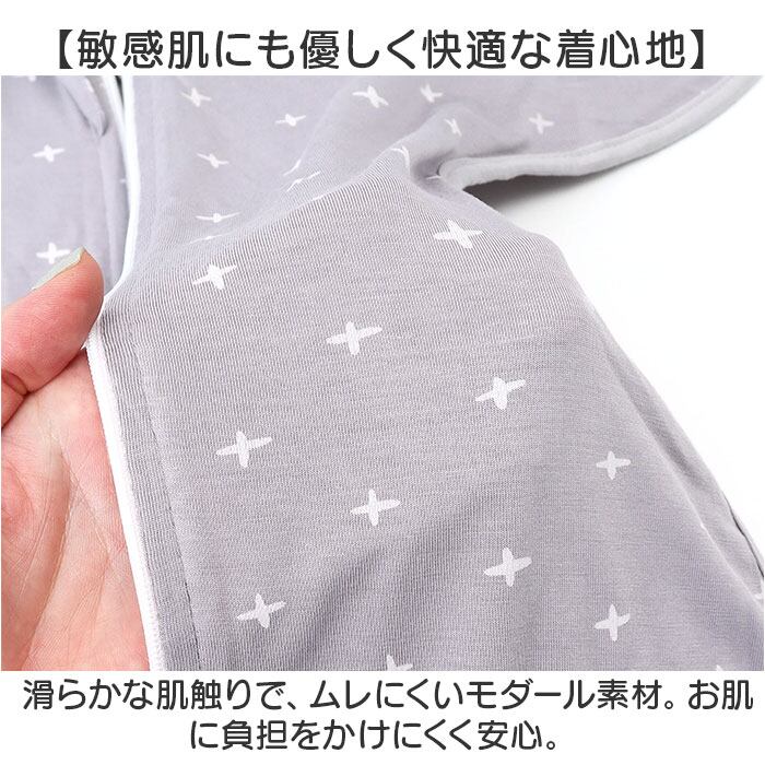 ・伸縮性に優れており、スワドルの中でも手足を自由に動かせる!袖付きで、手を出すことも可能。