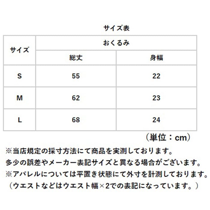 ※採寸方法の違いにより、多少の誤差がある場合がございます。
