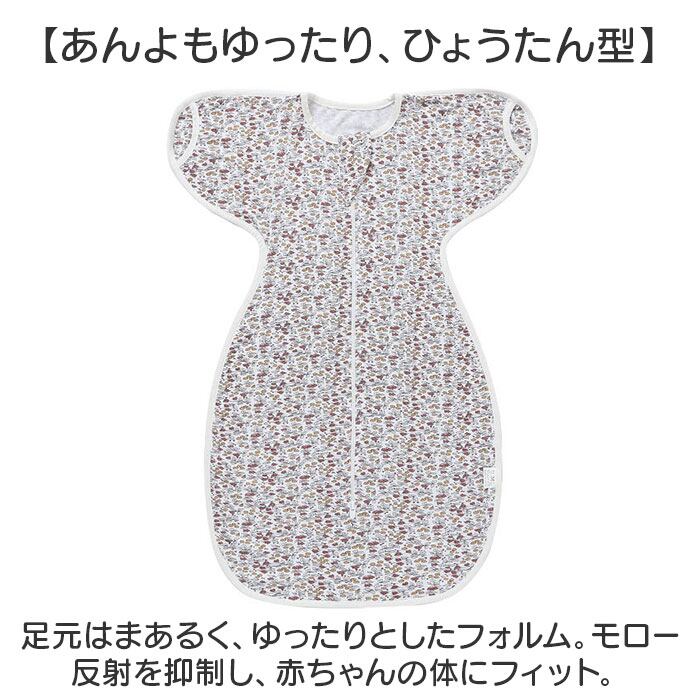 ・足元はまあるく、ゆったりとしたフォルム。モロー反射を抑制し、赤ちゃんの体にフィット。
