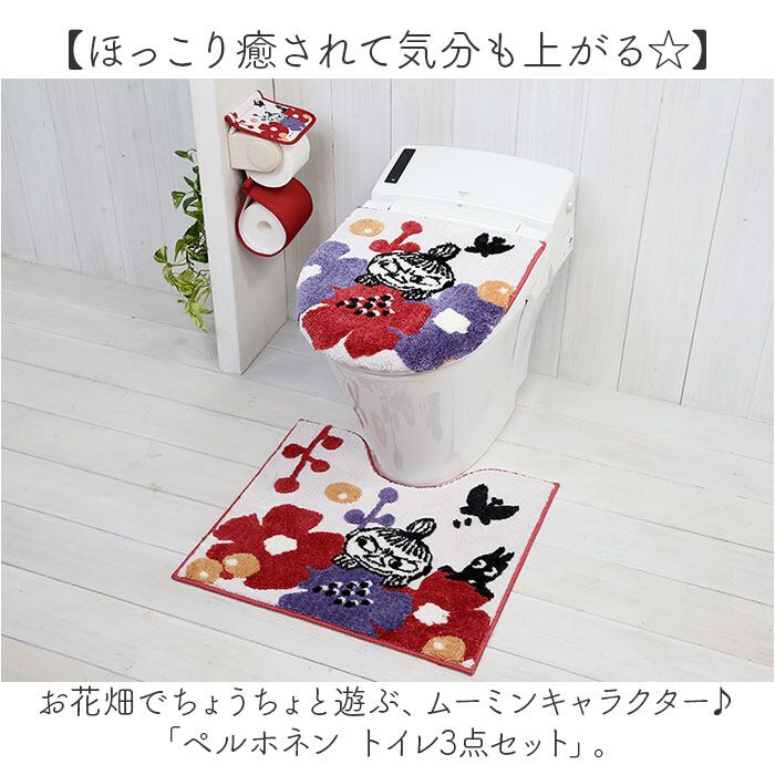 ・お花畑でちょうちょと遊ぶ、ムーミンキャラクター♪「ペルホネン トイレ3点セット」。