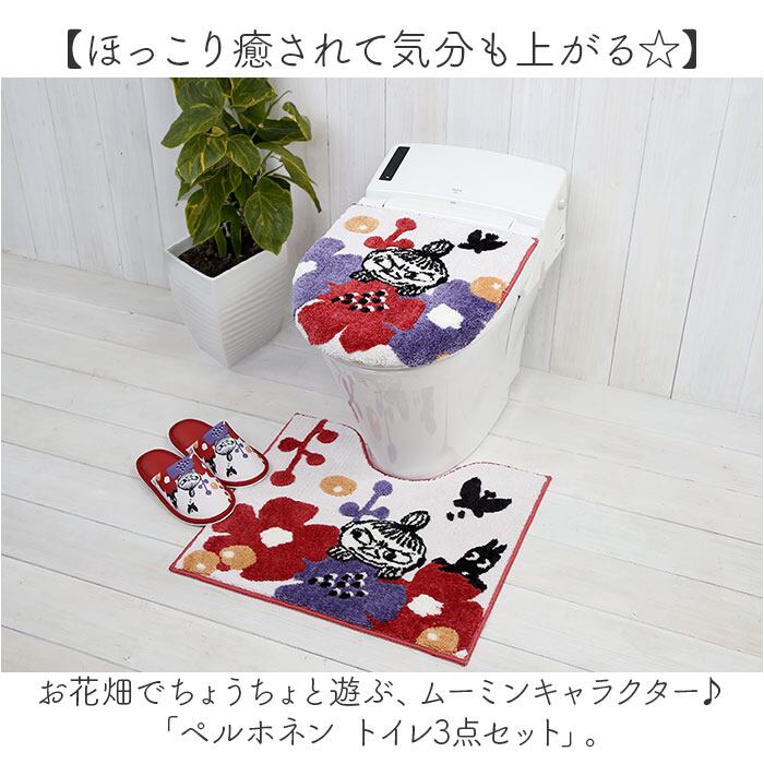 ・お花畑でちょうちょと遊ぶ、ムーミンキャラクター♪「ペルホネン トイレ3点セット」。