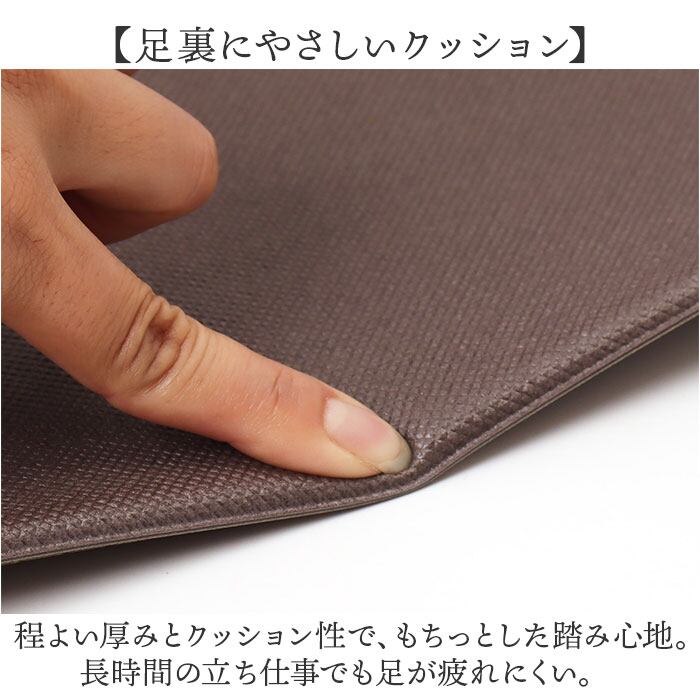 ・程よい厚みとクッション性で、もちっとした踏み心地。長時間の立ち仕事でも足が疲れにくい。