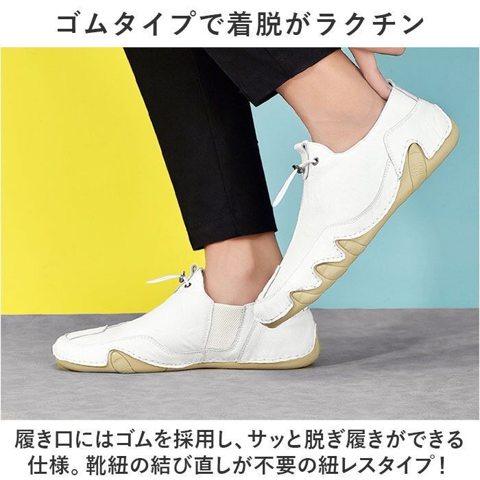 ・履き口にはゴムを採用し、サッと脱ぎ履きができる仕様。靴紐の結び直しが不要の紐レスタイプ!