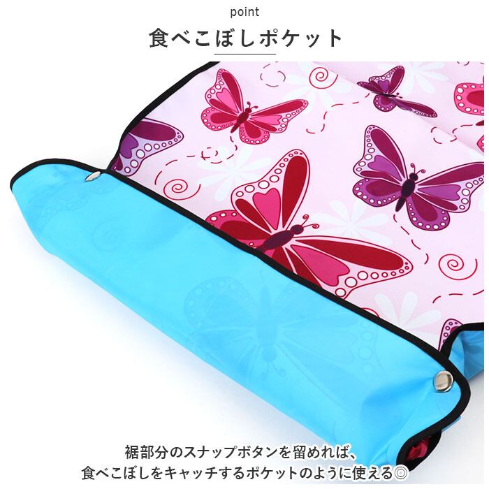 ・裾部分のスナップボタンを留めれば、食べこぼしをキャッチするポケットのように使える◎