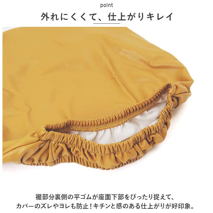 ・裾部分裏側の平ゴムが座面下部をぴったり捉えて、カバーのズレやヨレも防止!キチンと感のある仕上がりが好印象。