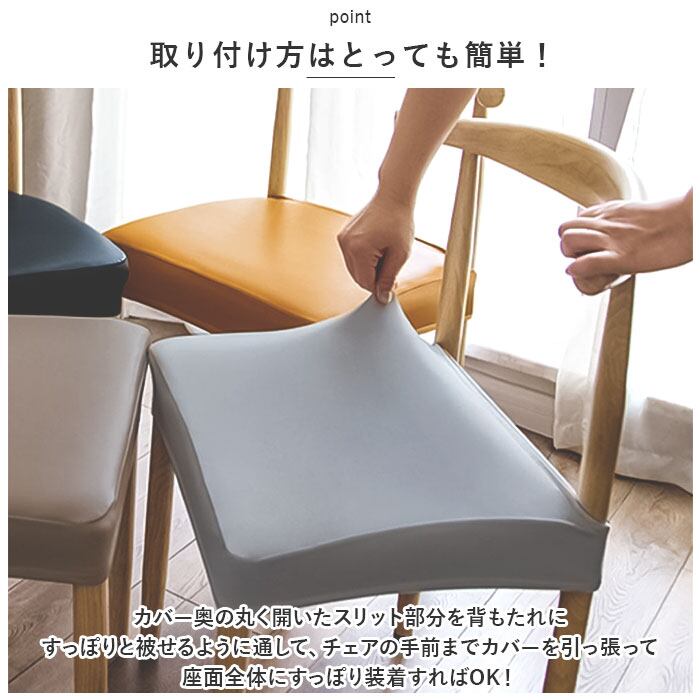 ・すっぽり被せて、お家の椅子を自分色にリニューアル!汚れも水滴もサッとひと拭きでお手入れ簡単「フェイクレザー チェアカバー」