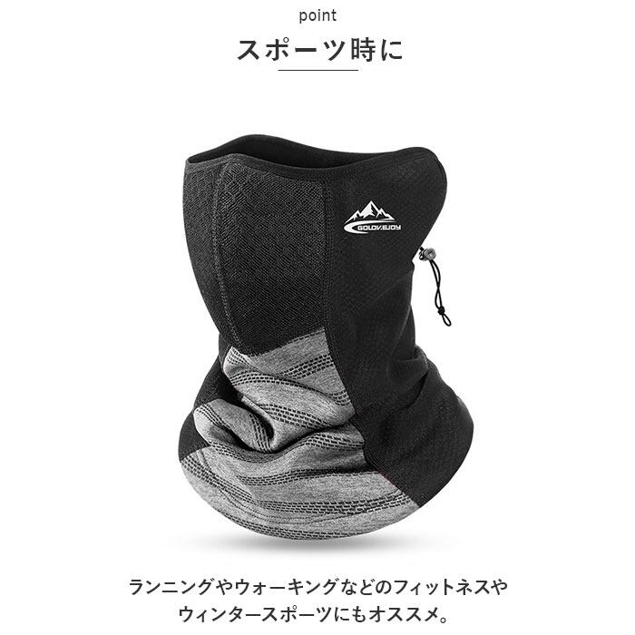 ・ストレッチ性と保温性に優れた生地が、フェイスラインや耳元、襟元までしっかりと覆って、冬の冷たい風をシャットアウト。