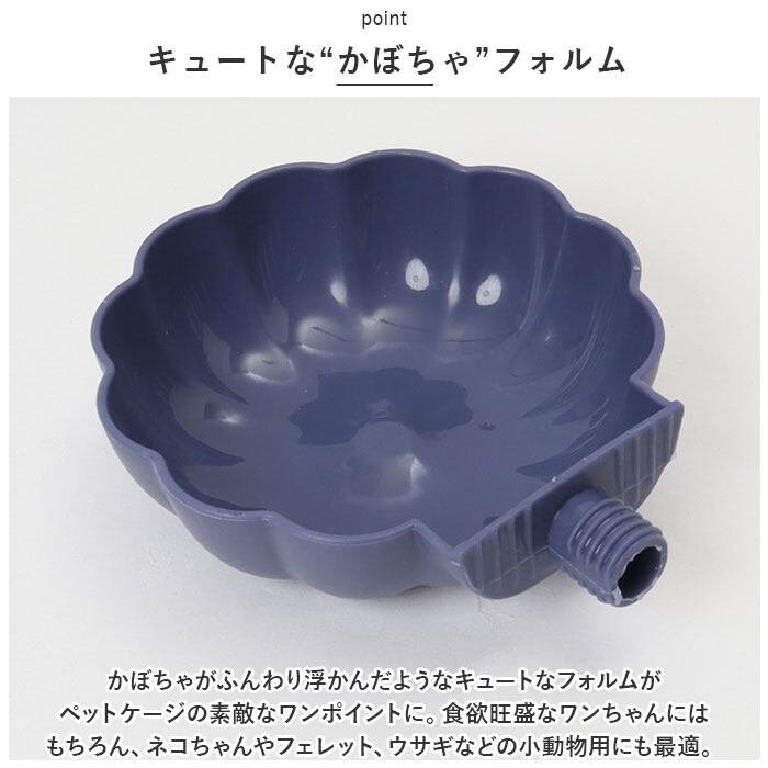 ・かぼちゃがふんわり浮かんだようなキュートなフォルムがペットケージの素敵なワンポイントに。食欲旺盛なワンちゃんにはもちろん、ネコちゃんやフェレット、ウサギなどの小動物用にも最適。