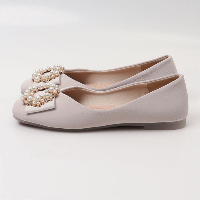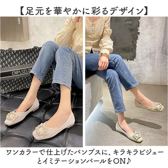 ・ワンカラーで仕上げたパンプスに、キラキラビジューとイミテーションパールをON♪