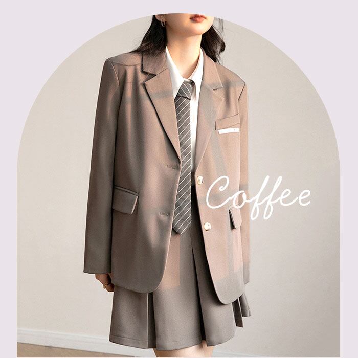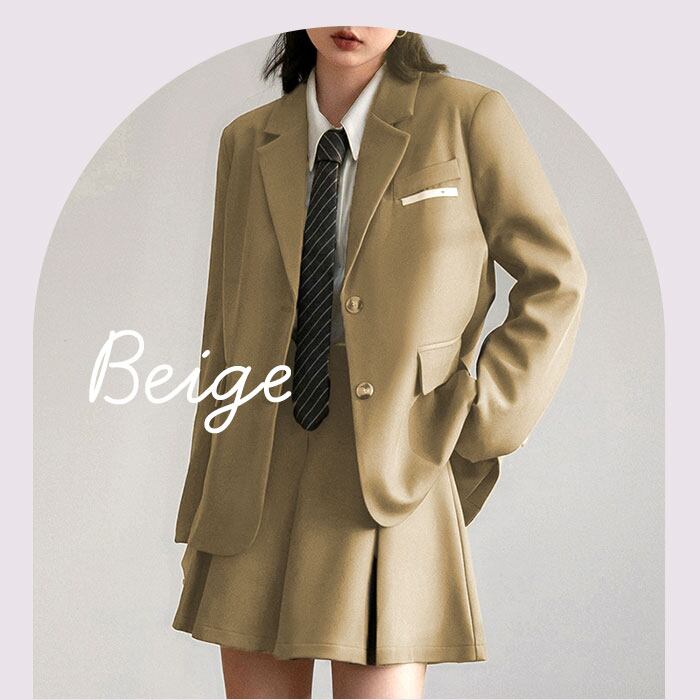 ・ジャケットとスカートの2点セット。お手持ちのシャツやネクタイなどと合わせるだけで、あっという間にコーデが完成。