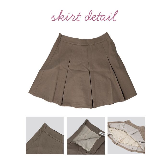 ・大きめのプリーツを施したミニスカート。サイドファスナーをスッと上げるだけで着替えもラクラク。ウエストがすっきり見えるフォルム◎
