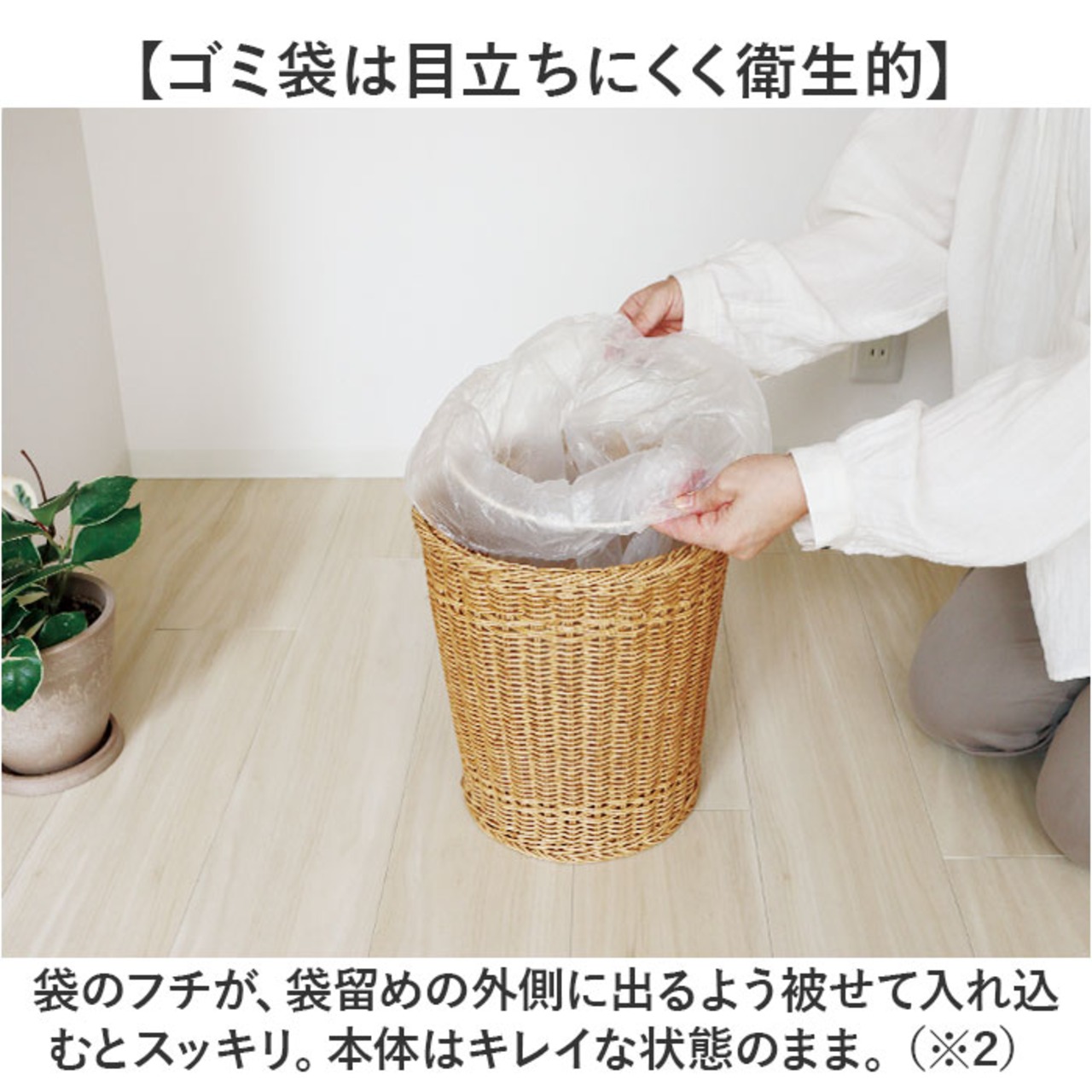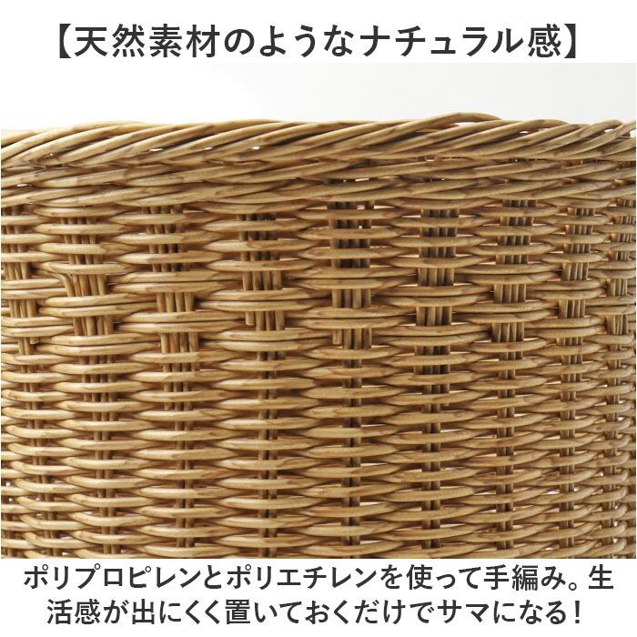 ・ポリプロピレンとポリエチレンを使って手編み。生活感が出にくく置いておくだけでサマになる!