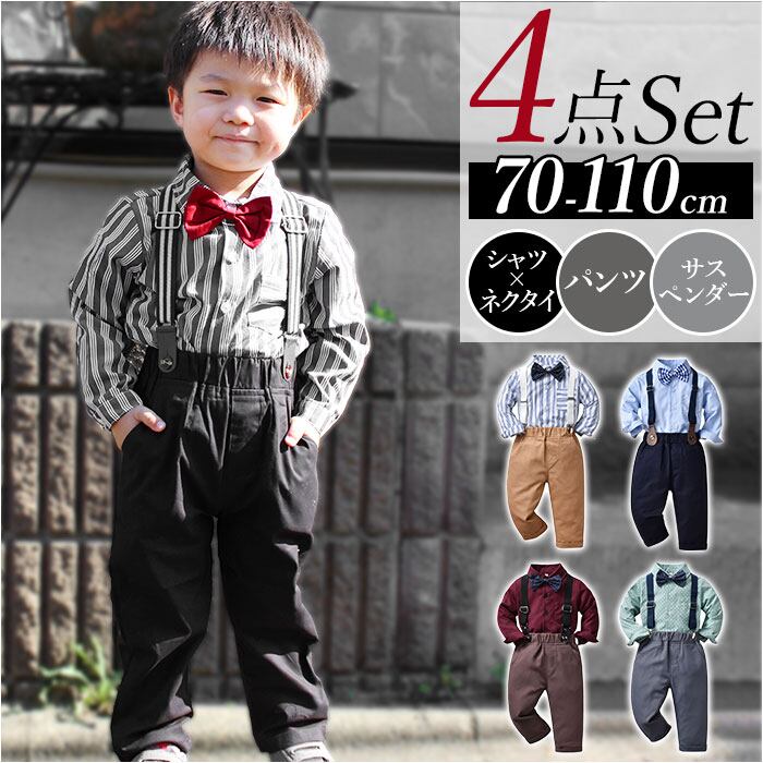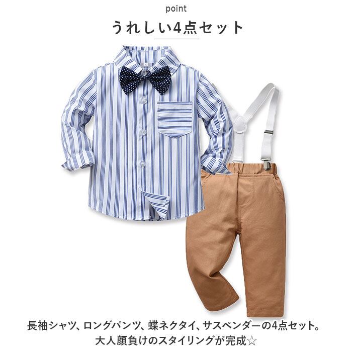 ベビー フォーマル 男の子 長袖 通販 ベビー服 赤ちゃん キッズ セット 上下セット パンツ ズボン シャツ 蝶ネクタイ リボン サスペンダー ズボン吊り パンツセット 子供服 入学式 卒園式 結婚式 入園式 おしゃれ 発表会 七五三 キッズファッション