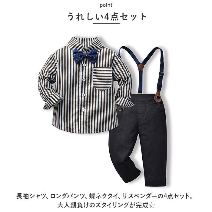 ベビー フォーマル 男の子 長袖 通販 ベビー服 赤ちゃん キッズ セット 上下セット パンツ ズボン シャツ 蝶ネクタイ リボン サスペンダー ズボン吊り パンツセット 子供服 入学式 卒園式 おしゃれ 発表会 七五三 入園式 結婚式 キッズファッション