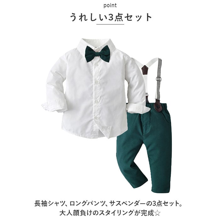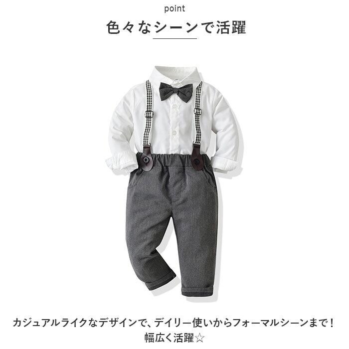 ベビー フォーマル 男の子 長袖 通販 ベビー服 赤ちゃん キッズ セット 上下セット シャツ 蝶ネクタイ リボン パンツ ズボン サスペンダー ズボン吊り パンツセット 子供服 入学式 卒園式 入園式 結婚式 発表会 七五三 おしゃれ キッズファッション