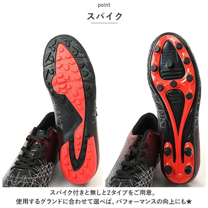 ・スパイク付きと無しと2タイプをご用意。使用するグランドに合わせて選べば、パフォーマンスの向上にも★