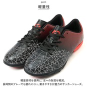 ・スポーティーなアッパーはクッション性と耐久性があり、走り回るサッカーに最適。