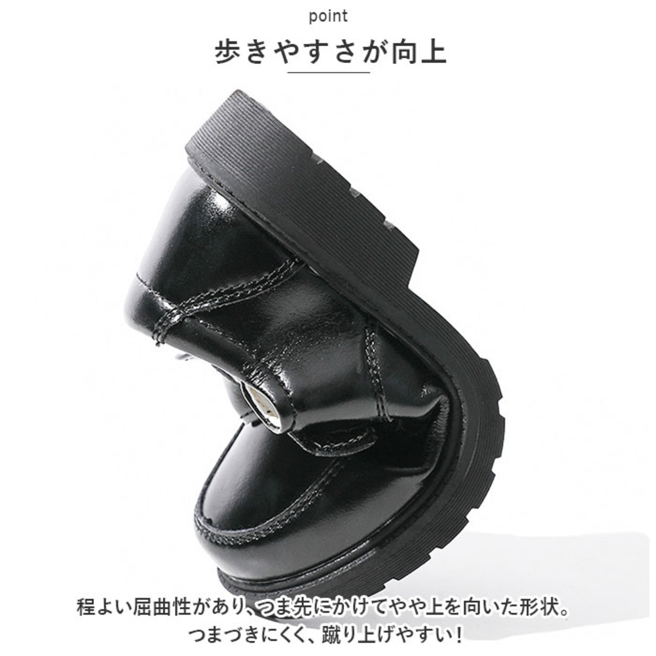 ・程よい屈曲性があり、つま先にかけてやや上を向いた形状。つまづきにくく、蹴り上げやすい!