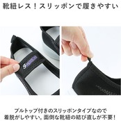 ・プルトップ付きのスリッポンタイプなので着脱がしやすい。面倒な靴紐の結び直しが不要!