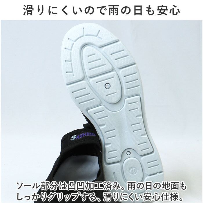 ・ソール部分は凸凹加工済み。雨の日の地面もしっかりグリップする、滑りにくい安心仕様。