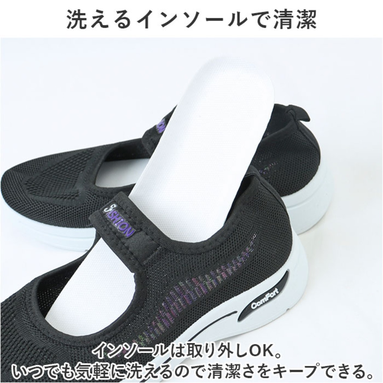 【洗えるインソールで清潔】