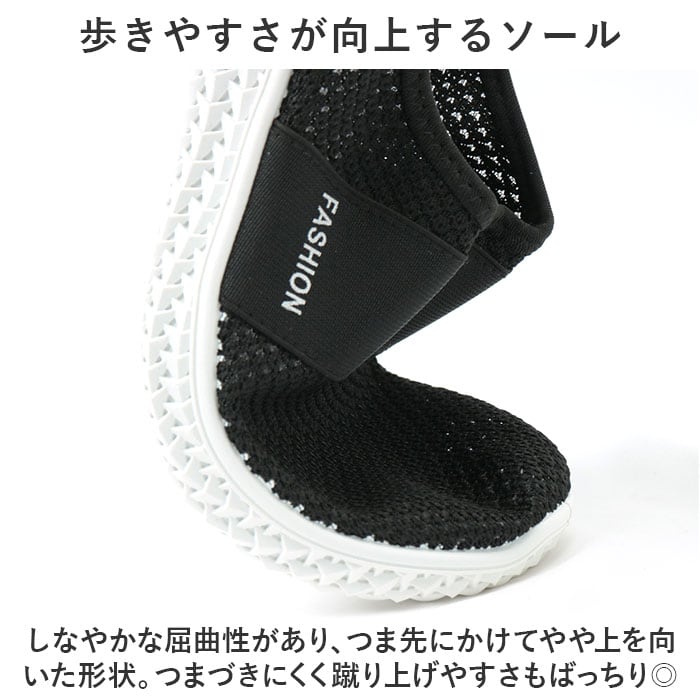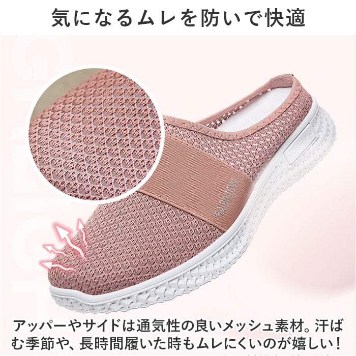 ・アッパーやサイドは通気性の良いメッシュ素材。汗ばむ季節や、長時間履いた時もムレにくいのが嬉しい!