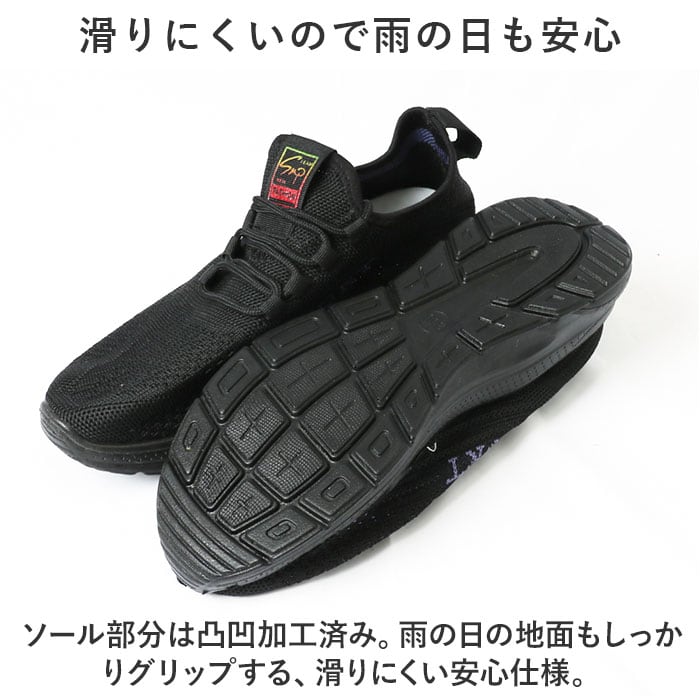 ・ソール部分は凸凹加工済み。雨の日の地面もしっかりグリップする、滑りにくい安心仕様。
