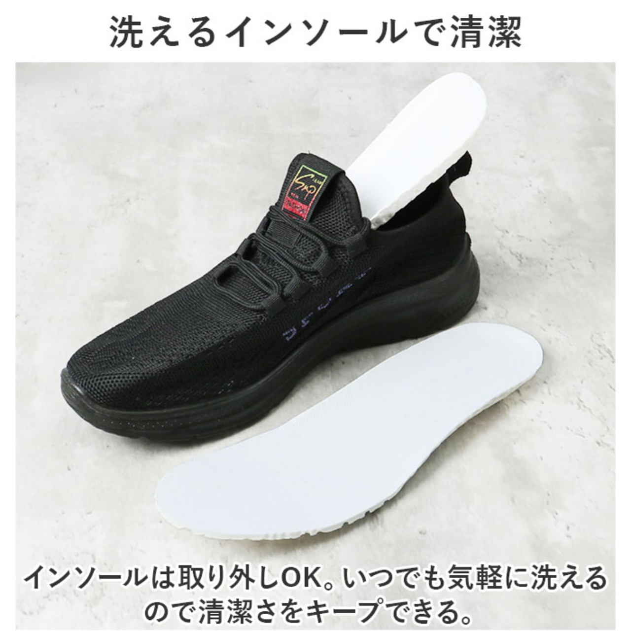 【洗えるインソールで清潔】