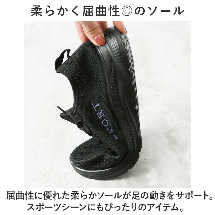 ・伸縮性のある柔らかなアッパー部分が、足のカタチにぴったりフィット!履き心地が超快適。