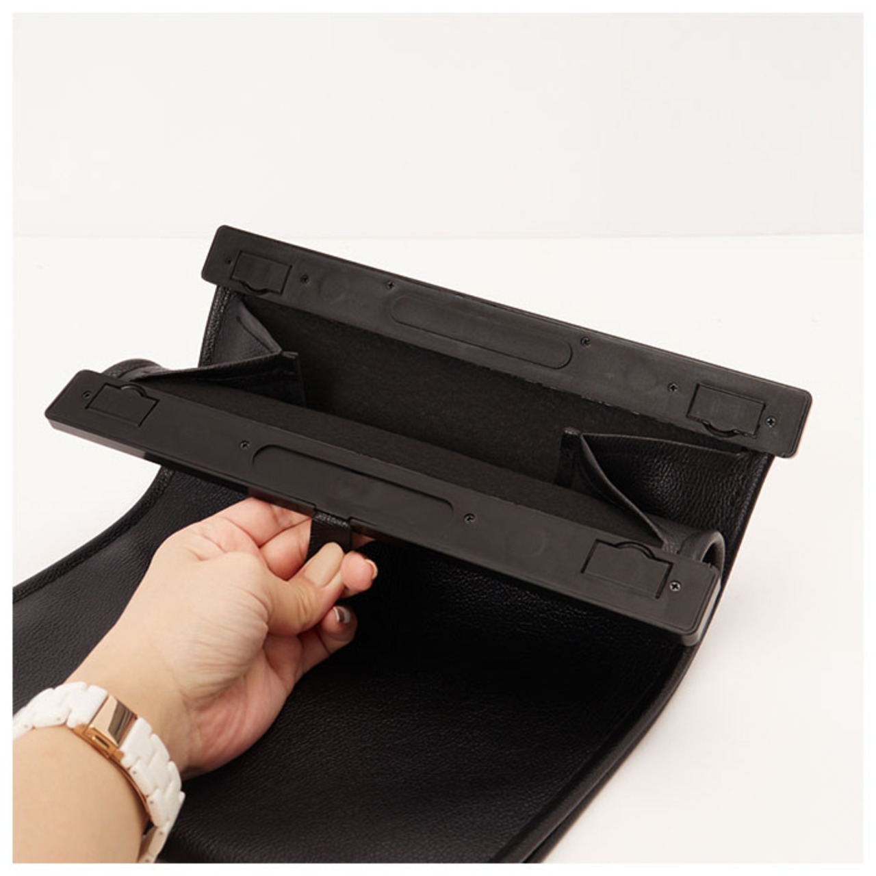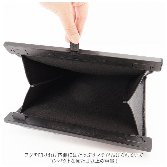 ・フタを閉めた時にはとってもスリムで省スペース。フタを開ければ内側にはたっぷりマチが設けられていて、コンパクトな見た目以上の容量!