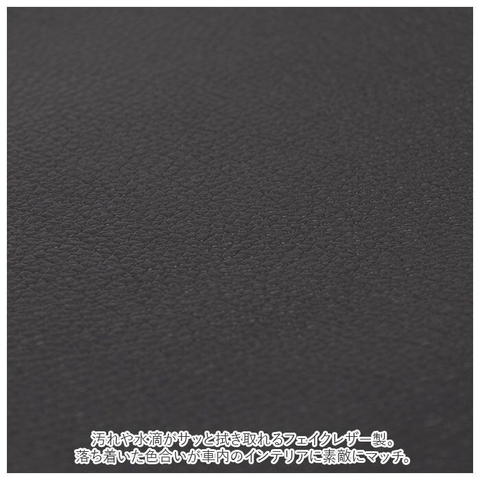 ・汚れや水滴がサッと拭き取れるフェイクレザー製。落ち着いた色合いが車内のインテリアに素敵にマッチ。