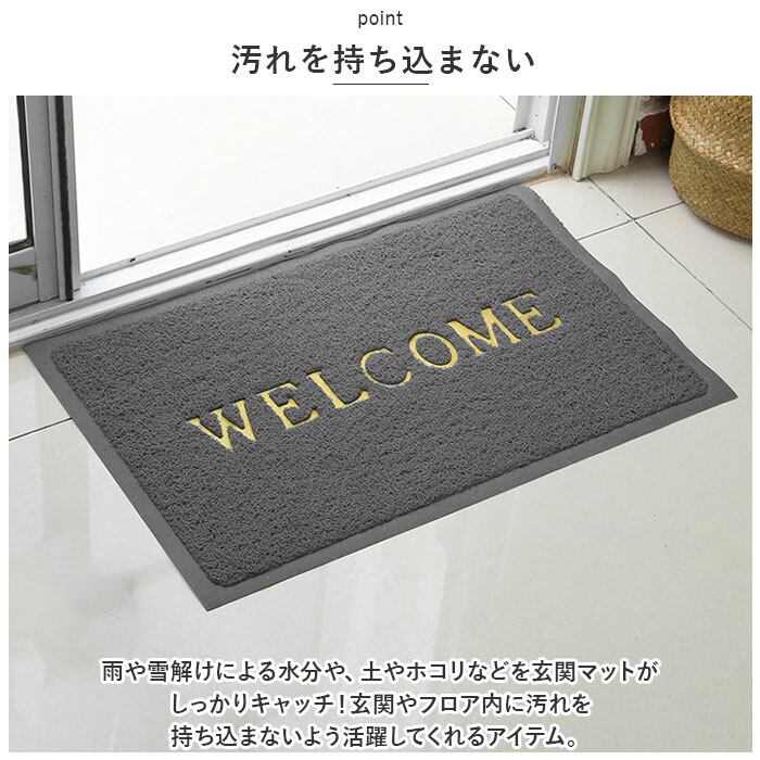 ・雨や雪解けによる水分や、土やホコリなどを玄関マットがしっかりキャッチ!玄関やフロア内に汚れを持ち込まないよう活躍してくれるアイテム。