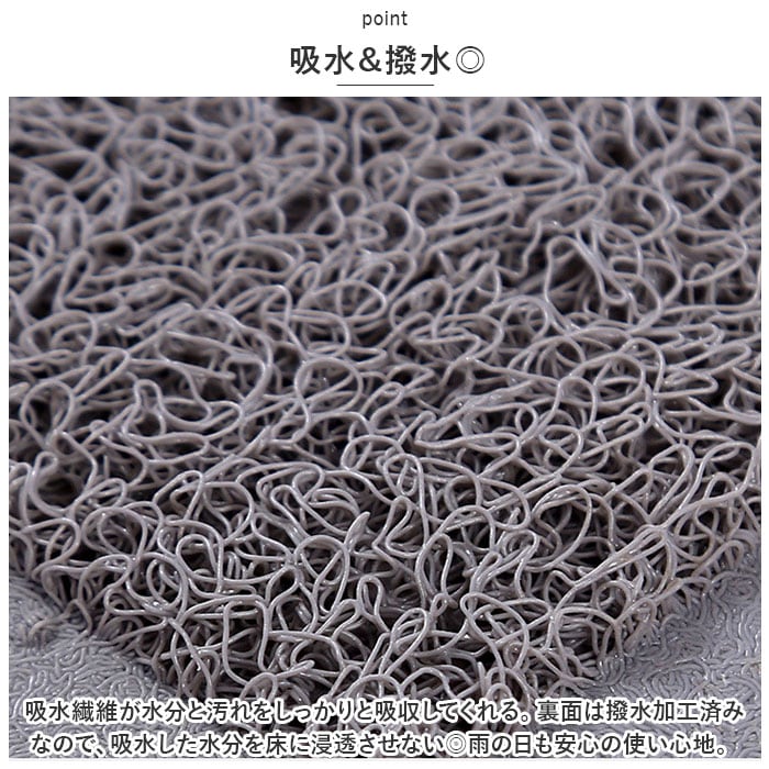 ・吸水繊維が水分と汚れをしっかりと吸収してくれる。裏面は撥水加工済みなので、吸水した水分を床に浸透させない◎雨の日も安心の使い心地。