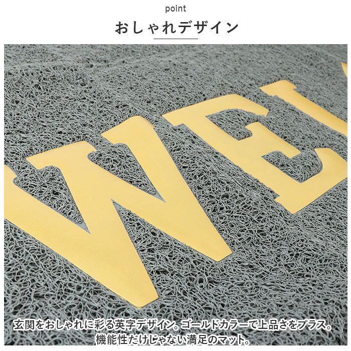 ・玄関をおしゃれに彩る英字デザイン。ゴールドカラーで上品さをプラス。機能性だけじゃない満足のマット。