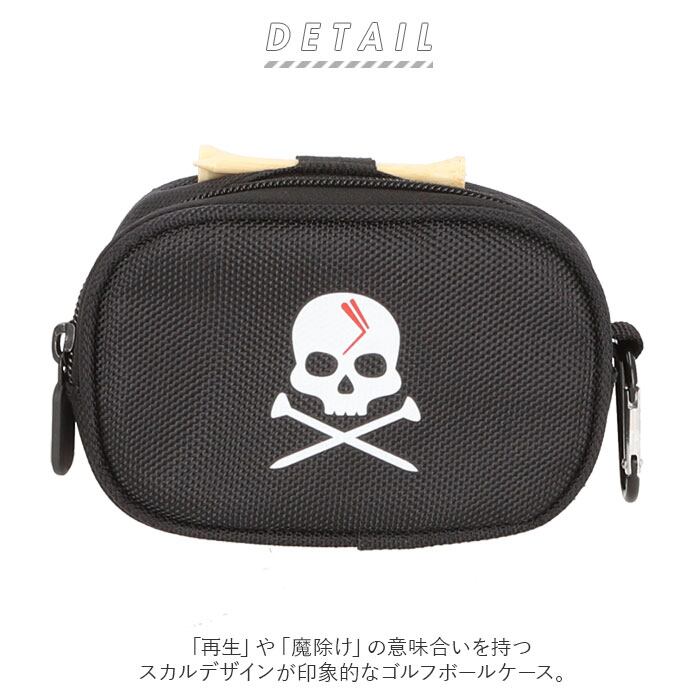 ・「再生」や「魔除け」の意味合いを持つスカルデザインが印象的なゴルフボールケース。