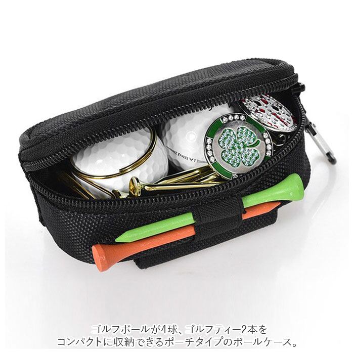 ・ゴルフボールが4球、ゴルフティー2本をコンパクトに収納できるポーチタイプのボールケース。(※ゴルフ協会が定める規格サイズ[直径:約42.67mm]よりも著しく大きなボールの場合、ケースに4球収納できない場合もございます。ご注意ください。)