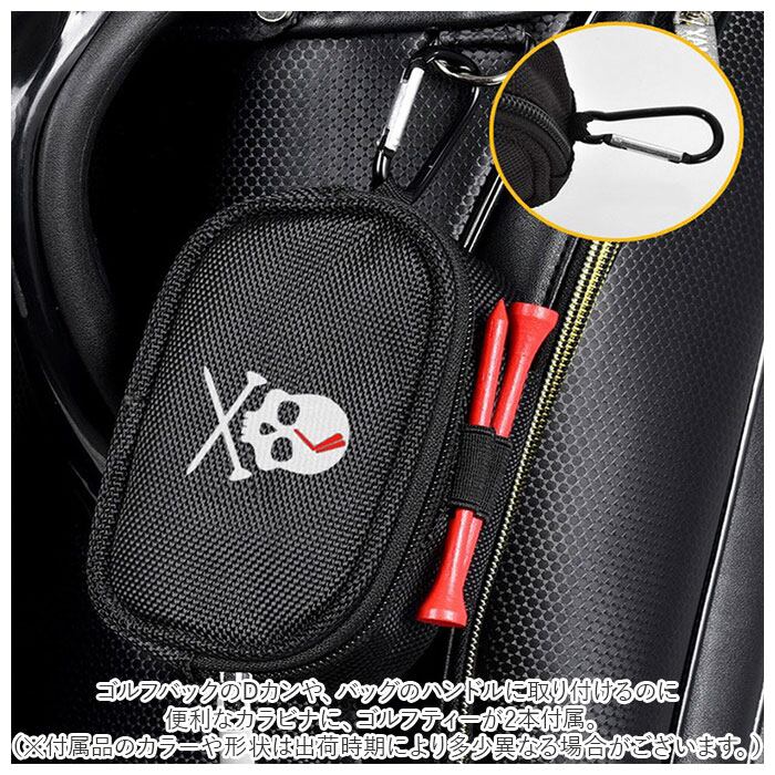 ・ゴルフバックのDカンや、バッグのハンドルに取り付けるのに便利なカラビナに、ゴルフティーが2本付属。(※付属品のカラーや形状は出荷時期により多少異なる場合がございます。)