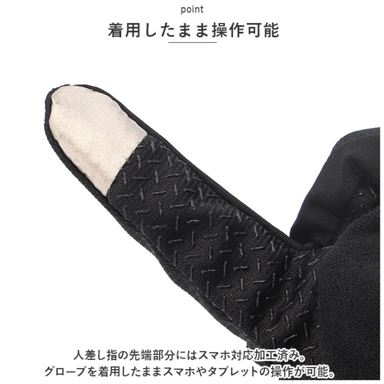 ・人差し指の先端部分にはスマホ対応加工済み。グローブを着用したままスマホやタブレットの操作が可能。