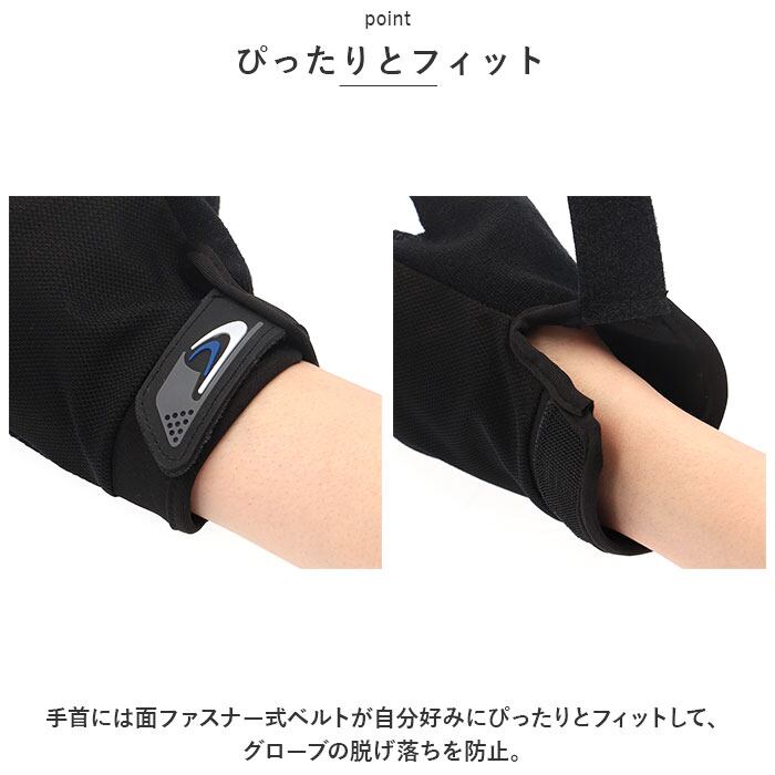 ・手首には面ファスナー式ベルトが自分好みにぴったりとフィットして、グローブの脱げ落ちを防止。
